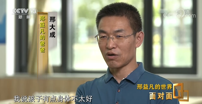 邢大成:劝了,高一他成绩下到年级200多名,我和爱人也和他商量说你太累了,吃不消,咱们到平行班吧。那时候我抱着他说这个事,他别的地方动不了,他拿脚尖对着他们班门踢,他说我不走,我就要在这待着。他觉得别人能做到的,他也能做到。