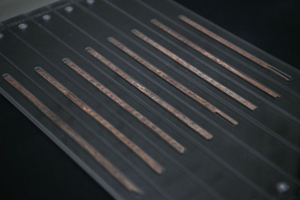 这是和“经穴髹漆人像”一起出土的部分医学竹简。新华社记者胥冰洁 摄