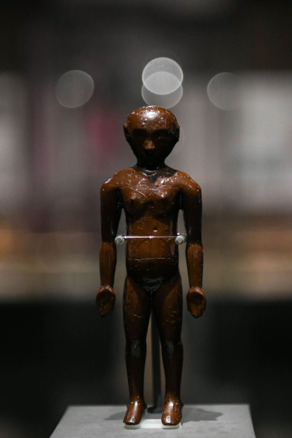 这是成都博物馆展出的“经穴髹漆人像”。新华社记者胥冰洁 摄