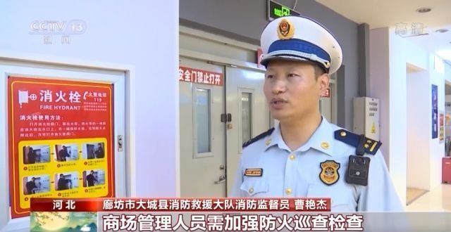 廊坊市大城县消防救援大队消防监督员 曹艳杰:节日期间商场人员流动性较大,商场管理人员需加强防火巡查检查,保证安全出口,保持通道畅通,严禁存放易燃易爆物品。