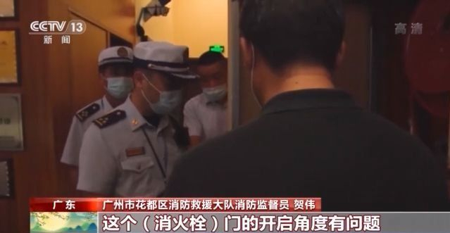 广州市花都区消防救援大队消防监督员 贺伟:这个(消火栓)门的开启角度有问题,正常来讲是要全部打开。