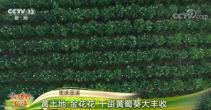 央视网消息:这里是重庆巫溪县尖山镇黄蜀葵种植基地,云雾缭绕间,成片的黄蜀葵竞相绽放,金黄色的花朵犹如繁星点点,勾勒出一幅美丽的田园风景画。