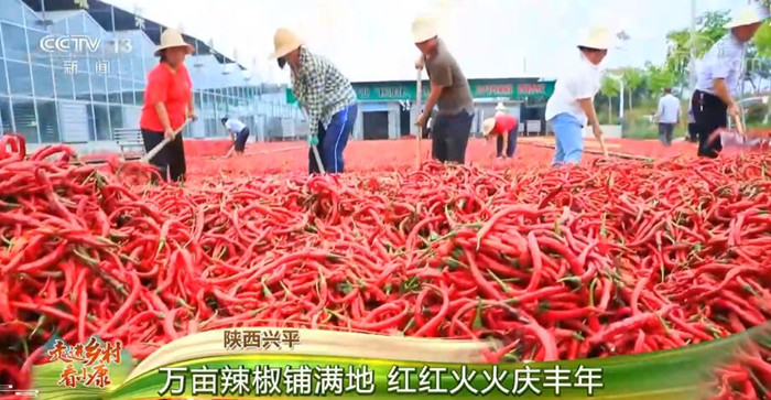 央视网消息:眼下正是辣椒收获的季节,陕西兴平的万亩辣椒喜获丰收,当地群众进入一年中最忙碌的季节。