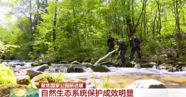 东北虎豹国家公园试点区保护珍稀濒危野生动物东北虎、东北豹及温带针阔叶混交林生态系统,建成“天地空”一体化监测体系,监测到新增野生东北虎幼虎10只、种群数量40只左右,新增东北豹幼豹7只、种群数量50只左右。大熊猫国家公园试点区保护以大熊猫为代表的生物多样性及亚热带山地和高山森林生态系统,首次在秦岭主峰和岷山土地岭、大相岭峨眉山区域发现野生大熊猫。海南热带雨林试点区保护岛屿型热带雨林生态系统及海南长臂猿等濒危物种,长臂猿数量增长到35只5个家族。