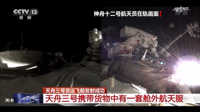 除此之外,天舟三号还带了一套舱外航天服前往空间站。舱外航天服是航天员出舱作业的必要装备,随着空间站建设任务的推进,航天员出舱作业次数增加,就需要天舟三号带上去一套全新的舱外服,在紧急情况下,作为备份使用。