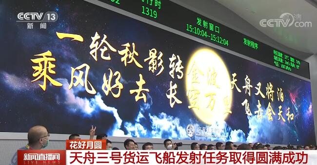 今天15时10分,搭载天舟三号货运飞船的长征七号遥四运载火箭在我国文昌航天发射场点火发射,约597秒后,飞船与火箭成功分离进入预定轨道,15时22分,飞船太阳能帆板顺利展开且工作正常,发射取得圆满成功。