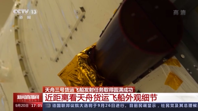 总台央视记者 李宁:在天舟货运飞船,包括很多的航天器上,都会出现金色的一件衣服,这件金色衣服它也是起到一个保温的效果。