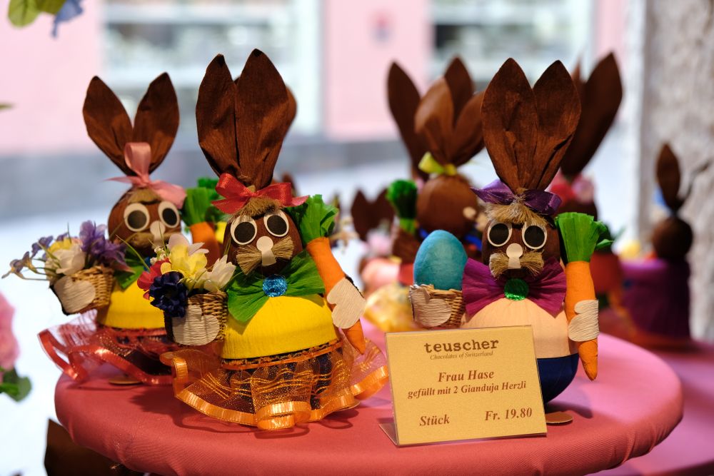 4月3日,在瑞士苏黎世拍摄的商店内售卖的兔子包装巧克力。新华社发(马丁娜·富克斯摄)