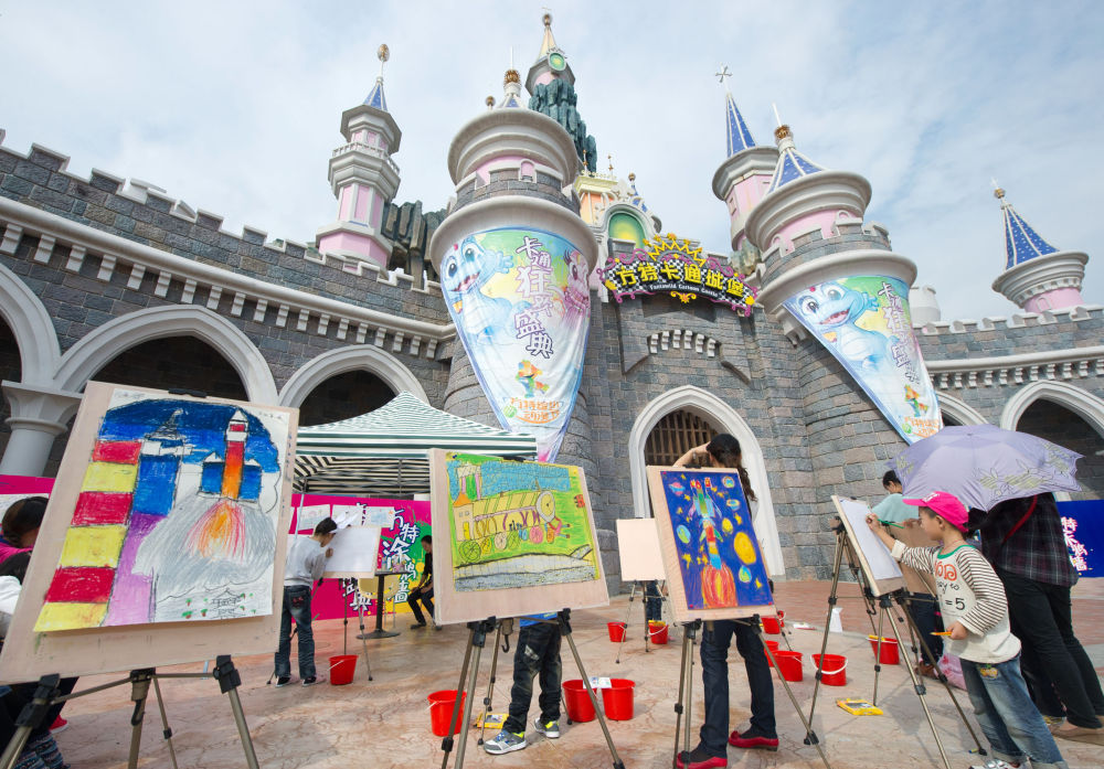 ↑2011年10月5日,小游客们在安徽芜湖“方特梦幻王国”主题公园内进行现场绘画。新华社记者 郭晨 摄