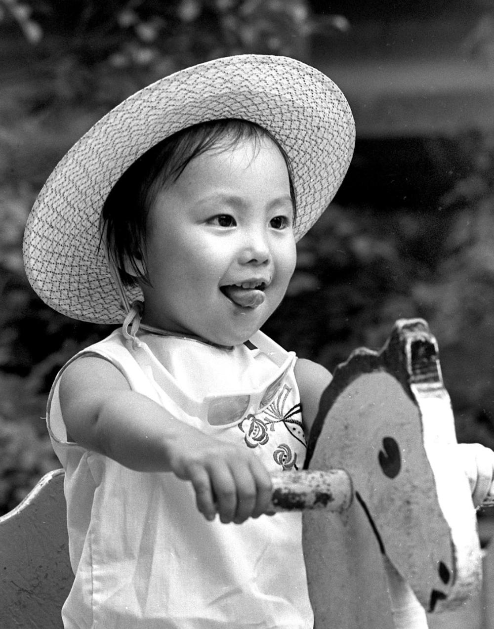 ↑1979年,小朋友在杭州儿童公园骑上小木马。新华社记者 吴元柳 摄