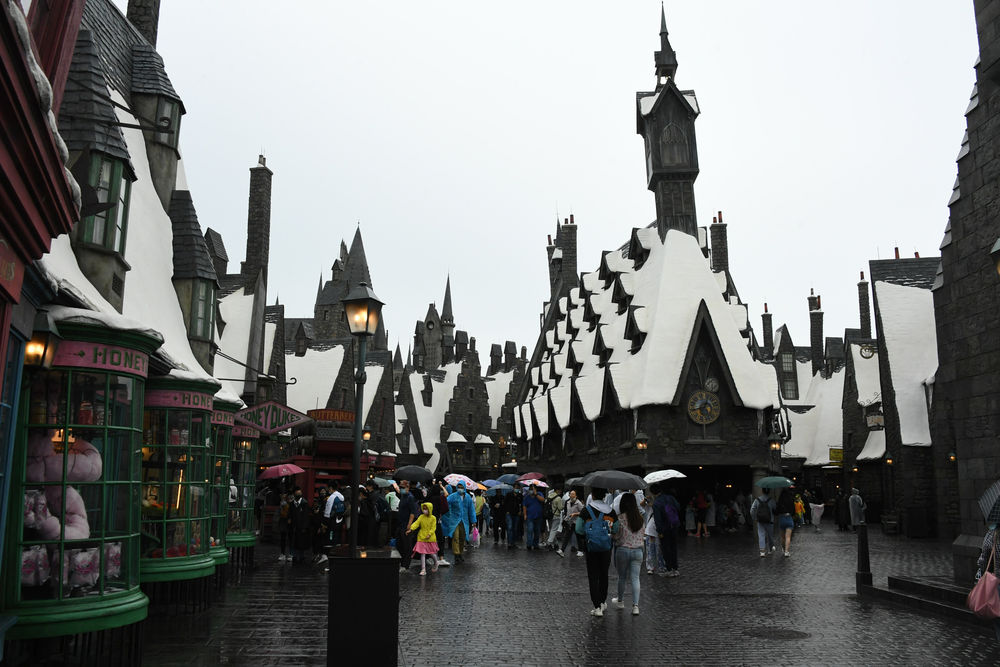 ↑9月20日,在北京环球影城主题公园,游客在哈利·波特的魔法世界主题景区游览。新华社记者 任超 摄