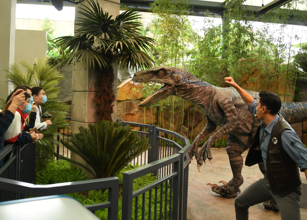↑9月20日,在北京环球影城主题公园,游客在北京环球度假区侏罗纪世界努布拉岛主题景区感受奇遇迅猛龙互动体验。新华社记者 任超 摄