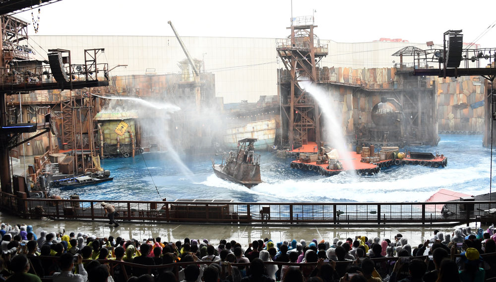 ↑9月20日,在北京环球影城主题公园,游客欣赏未来水世界特技表演。新华社记者 任超 摄