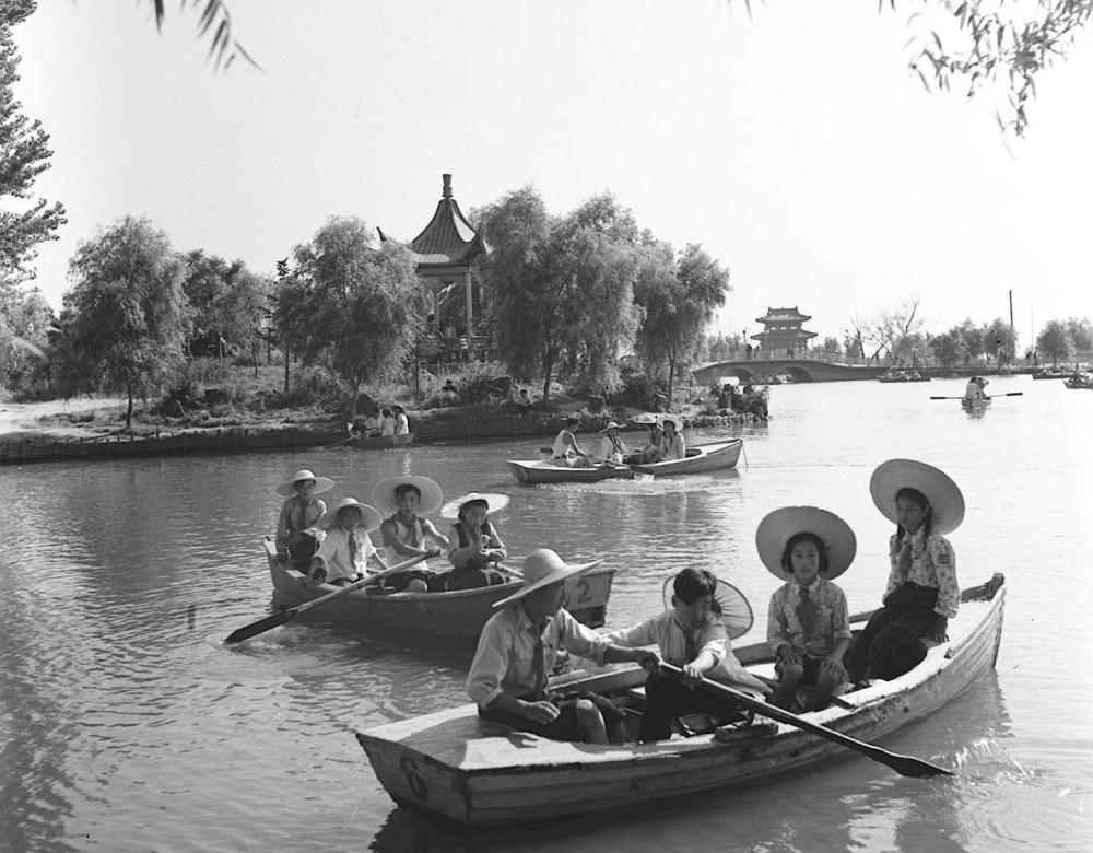 ↑1955年8月,儿童们在鞍山二一九公园划船。新华社记者 杨礼门 摄