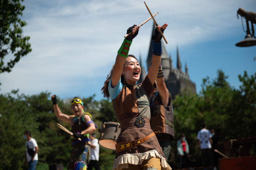 ↑9月20日,在北京环球度假区开园仪式现场,演员表演歌舞节目。新华社记者 任超 摄