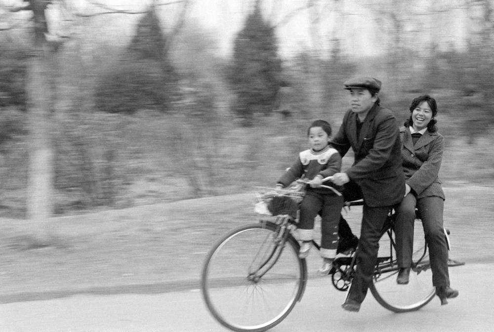 ↑1988年4月,全家坐上自行车,逛公园去。新华社记者 毕玥年 摄