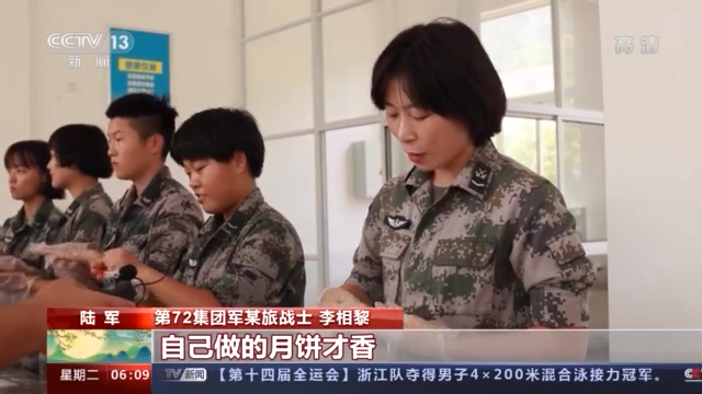 第72集团军某旅战士 李相黎:自己做的月饼味道才香,我们自己动手做月饼,是对中秋传统佳节的一个传承,同时,也打算将我们自己做的月饼送给坚守在岗位上的战友们,给他们送去节日的祝福。