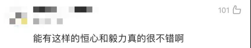 不少网友为他的恒心和毅力点赞