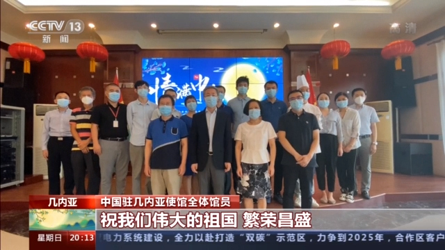 中国驻几内亚使馆全体馆员:中国驻几内亚使馆全体同志,祝我们伟大的祖国繁荣昌盛,祝我们的人民阖家团圆,中秋快乐。