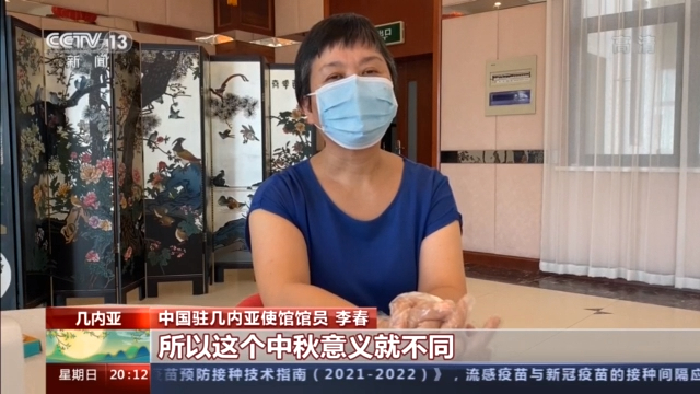 中国驻几内亚使馆馆员 李春:我是来自郑州的,前段时间郑州不但有疫情还有灾情,然后我在几内亚这边不但有疫情还有政变,所以这个中秋意义就不同。