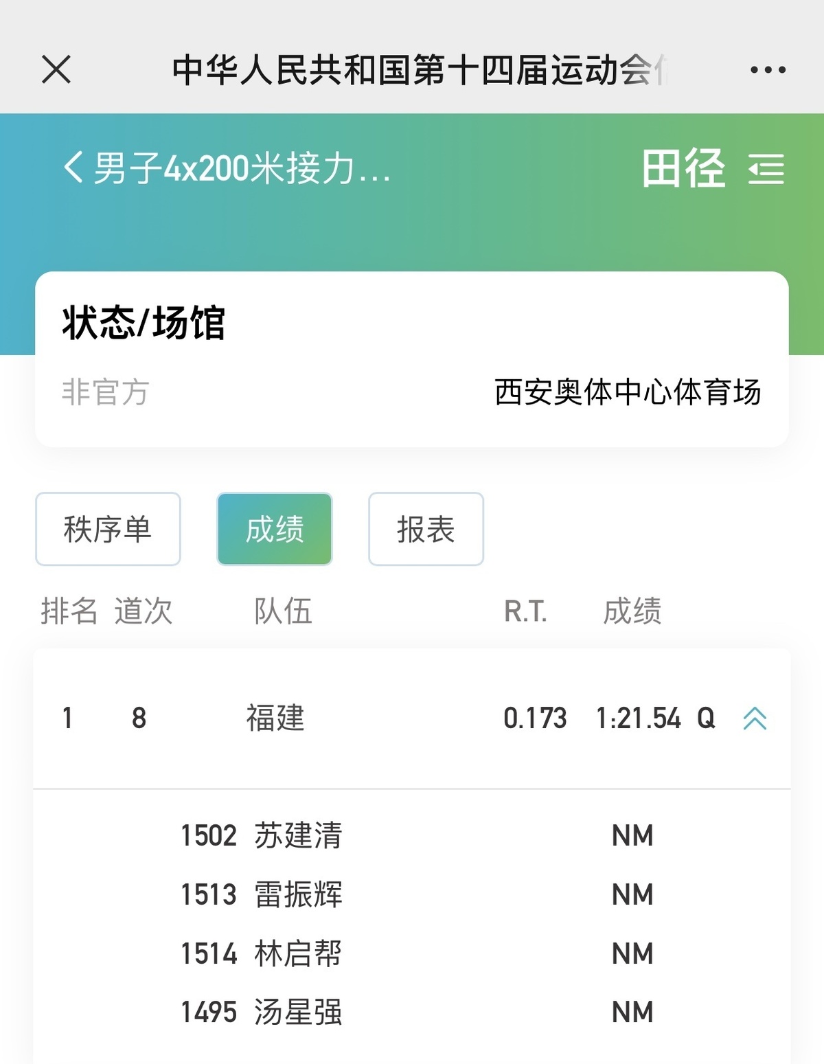 全运会男子4×200米接力预赛福建队破亚洲纪录