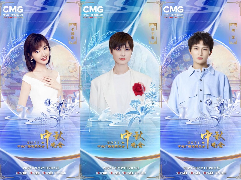 同预告片一起公开的,还有今年秋晚的全部嘉宾阵容,在发布的几组海报中,除去丰富的演出阵容外,海报主题与细节元素也格外吸睛。海报共分“清风朗月”、“花好月圆”与“浮光月影”三个版本。“清风朗月”版海报以蓝紫色调为背景,毛晓彤、李宇春、周深等嘉宾在海报中央被一个象征中秋团圆的圆环所包裹,圆环中若隐若现的古代建筑与海报下方的池水元素与晚会举办地相结合,清新中又具内涵,仿若一股清风扑面而来。