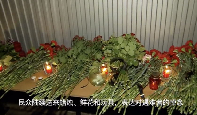 当地时间21日凌晨,中央广播电视总台CGTN俄语部报道员亚历山大·普加乔夫前往俄罗斯彼尔姆国立大学,探访枪击事件现场。总台报道员发现,该大学教学楼前摆满了当地民众陆续送来的蜡烛、鲜花和玩具,以悼念20日在枪击案中身亡的民众。