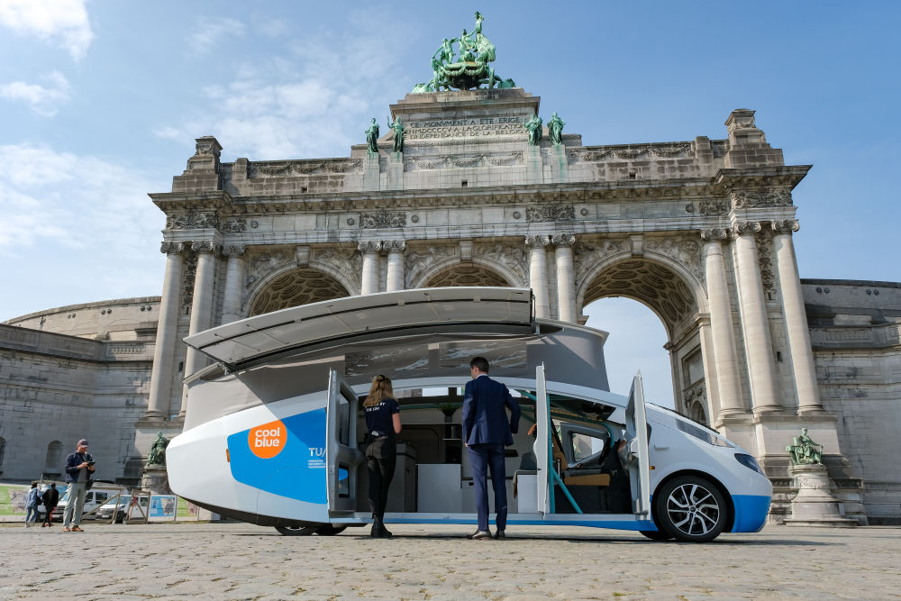 ↑这是9月20日在比利时布鲁塞尔五十周年纪念公园拍摄的Stella Vita太阳能房车。