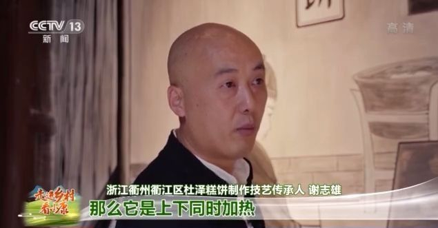 浙江衢州衢江区杜泽糕饼制作技艺传承人 谢志雄:我们这个桂花饼最主要的地方就是在于它的配方,它的配方跟其他的月饼不一样。它是按照每天的天气变化,湿度、温度的变化来下料的。每一天下的料都不一样。没有进炉子以前它是实心的,只有进了炉子以后,它是上下同时加热,里面的麦芽糖化掉才变成空心。吃去很脆、很酥,有点甜但是不腻,还有淡淡的桂花香。