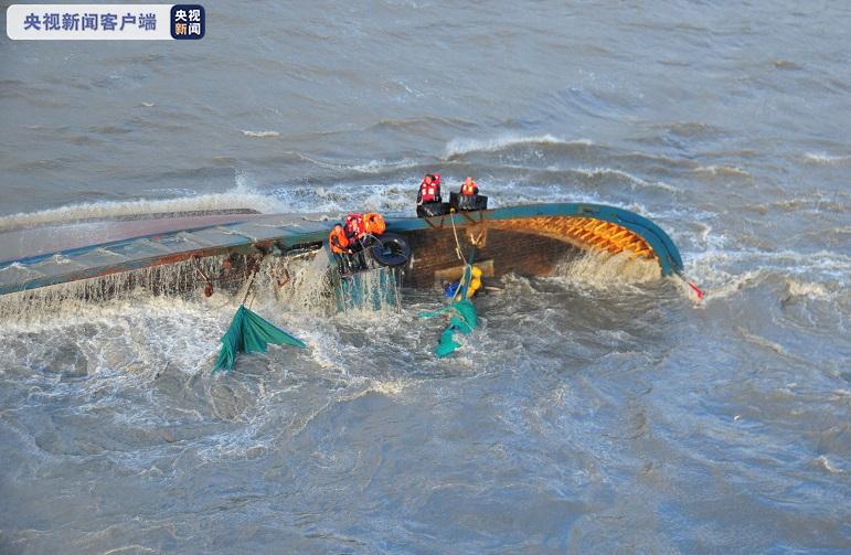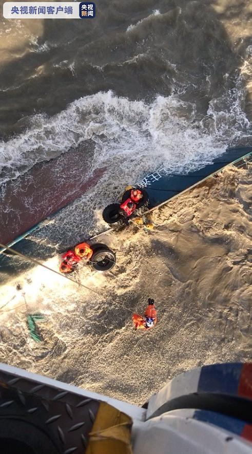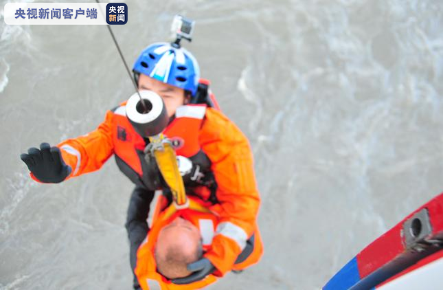 8时5分,机组人员到达事发现场,发现2条货船离岸边约2-3海里,因海上大风浪,船身被海水淹没仅剩驾驶台浮在海面,情况危急。机组驾驶直升机在遇险船舶上空盘旋,发现其中一艘船上4名船员后立即实施吊运作业将其转运至救助直升机。