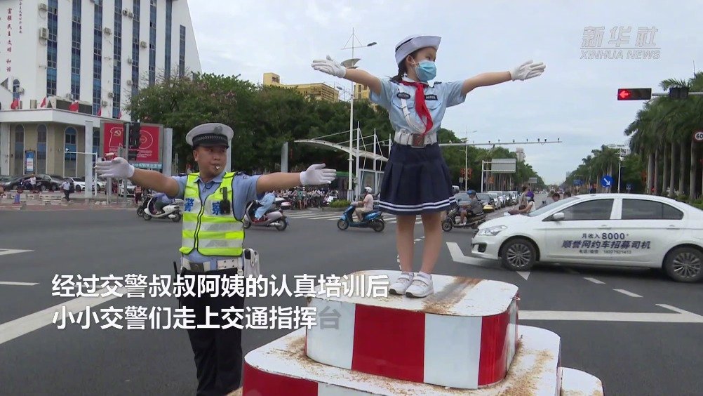 #萌娃变身小交警#【#广西萌娃上岗指挥与交警动作神同步#】近日,广西北海市交警部门与北海市海城区第一实验小学开展课外实践活动,把交通安全教育搬上交警执勤岗,让学生在实地体验中更好地将交通安全知识植入心中。经过交警叔叔阿姨的认真培训后,“小交警们”走上交通指挥台,跟随着哨声,同步指挥着车辆通行。学生们与交警神同步的认真动作,引得路人点赞。(记者杨驰,素材来源:北海市公安局) 新华社的微博视频