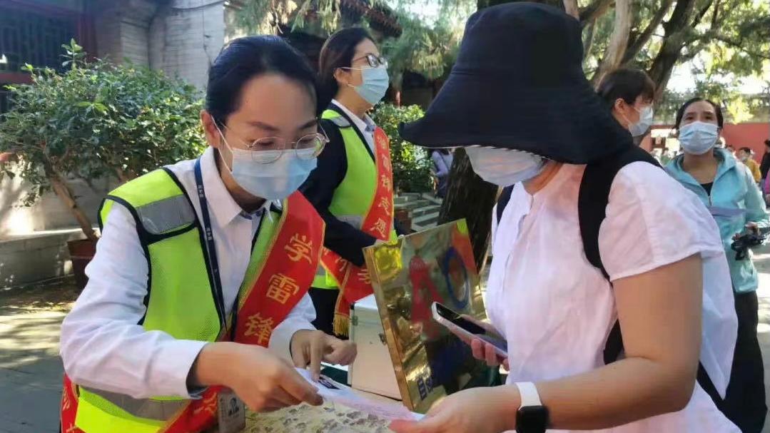 各区文明引导员还在各大公园开展文明游园引导服务,劝阻不文明行为,捡拾废弃物,宣传垃圾分类,帮扶游客,咨询指路。北京市各公园景区都在门区醒目位置摆放了《北京市公园游客守则》《北京市文明游园倡议书》和《北京市不文明游园行为清单》,引导游客文明游园。