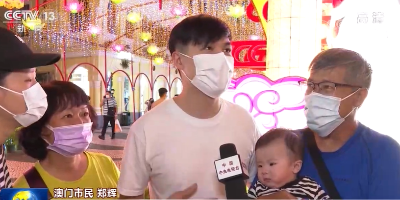 澳门市民 郑辉:因为他刚刚几个月,出来看一下,感受一下节日的气氛。祝福全国人民身体健康,中秋节快乐!