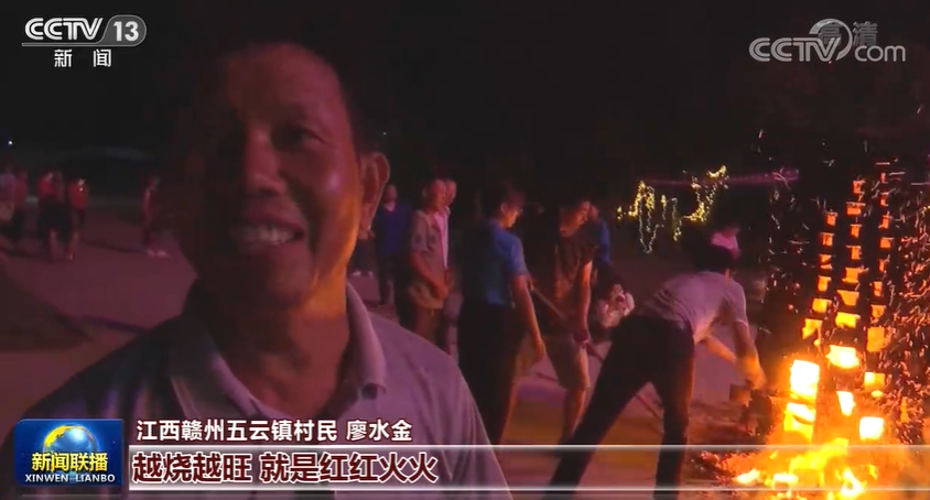 江西赣州五云镇村民 廖水金:这是我们的传统文化,象征着越烧越红就像那个火一样,越烧越旺,就是红红火火。