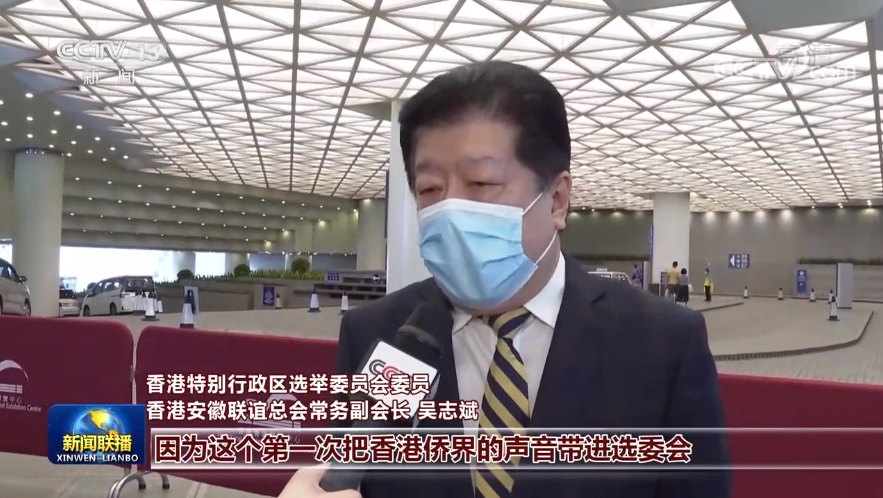 香港特别行政区选举委员会委员 香港安徽联谊总会常务副会长 吴志斌:这是一个历史性的突破,因为这个第一次把香港侨界的声音带进选委会,我们一定要在新一届的选委会工作中,积极认真地履职,同时也为香港的良政善治,做一个积极的参与者和推动者。