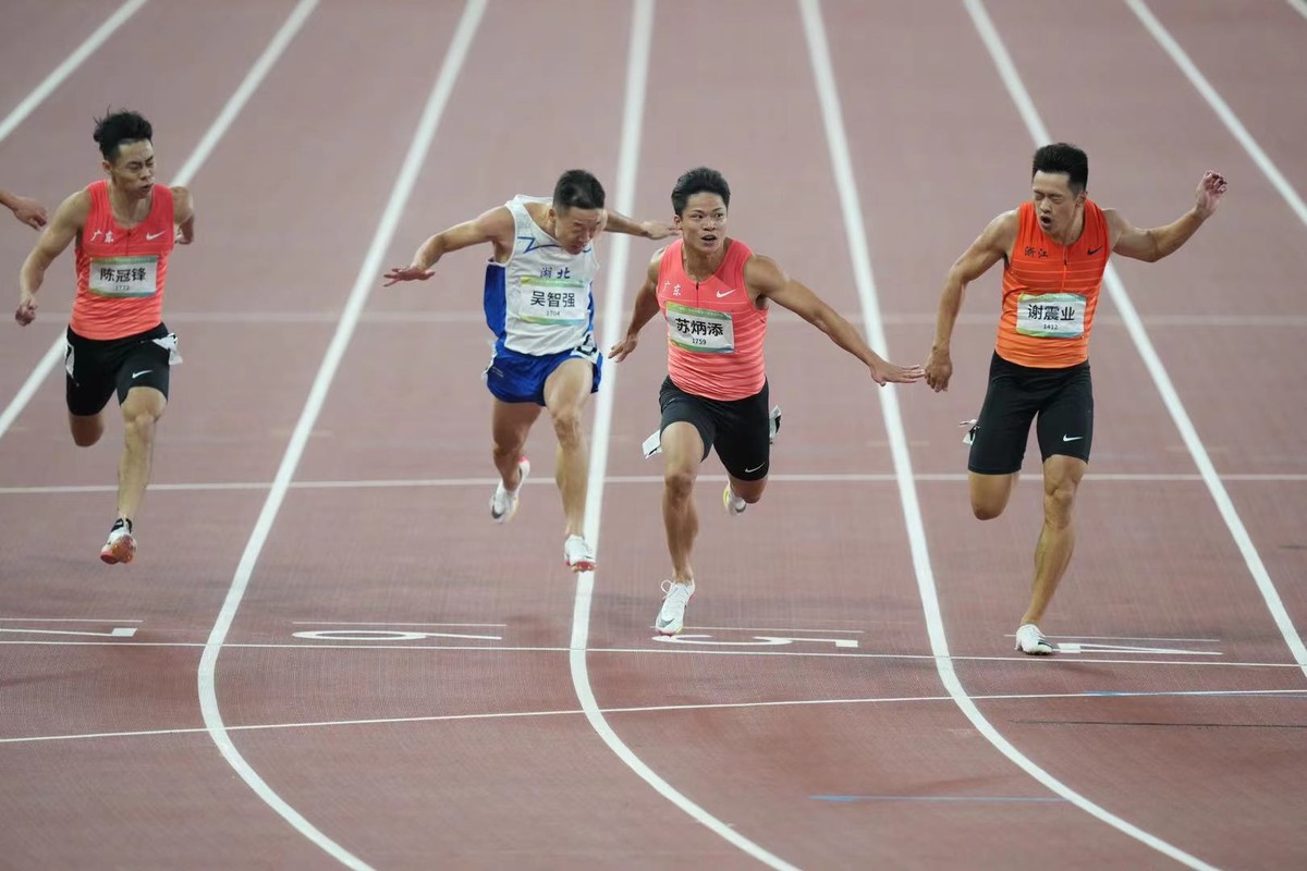 刚刚,十四运田径男子100米决赛在西安奥体中心体育场进行,从第5道出发的亚洲纪录保持者、“中国飞人”苏炳添跑出9秒95的好成绩,击败上届冠军谢震业等名将夺金,拿下个人首枚全运会金牌,并创下新的全运会纪录。