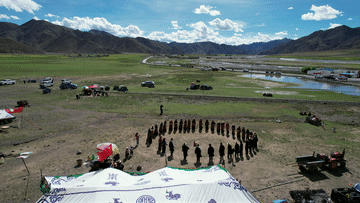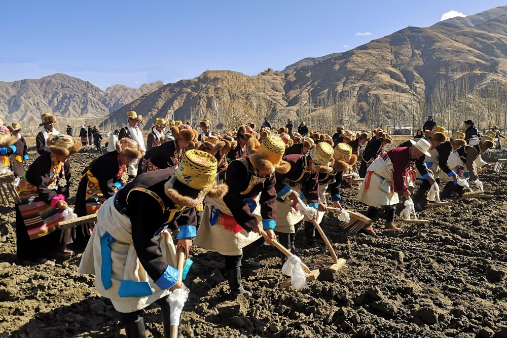今年3月底,在山南乃东区克松社区,人们身着节日盛装举行春耕仪式。新华社记者 董琳娜 摄