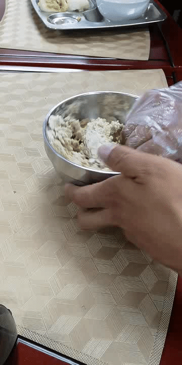 一同出差的这些天,我们分社的司机师傅丁增每天早晨必吃糌粑。我还专门细细地看过他的吃法。他先将少许酥油茶倒入碗内,有时候会再加些酥油和白糖,再将糌粑盛入碗里,随即用左手拿碗,右手在碗里不断地来回抓拌,拌匀后捏成小团就开始吃了。