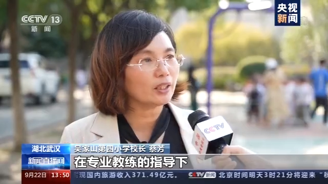 吴家山第四小学校长 蔡芳:运用我们的校本课程引领老师带着学生,在专业教练的指导下,了解冰上运动的进程与历史。