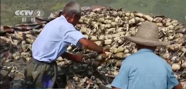 外地客商 彭彬:常年跟他们合作到这里来拉藕,每天都是四五千斤。