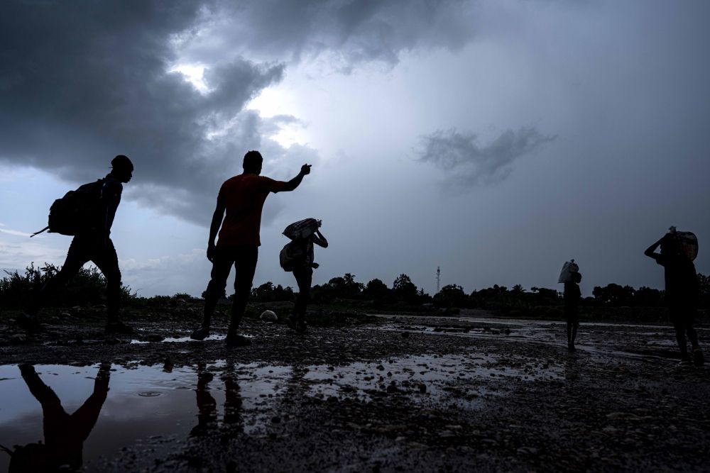 8月20日,人们在海地南部省渡河。(新华社发,戴维·德拉帕斯摄)