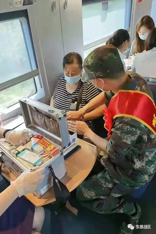 ▲王玉虎为突发疾病的乘客李阿姨治疗。
