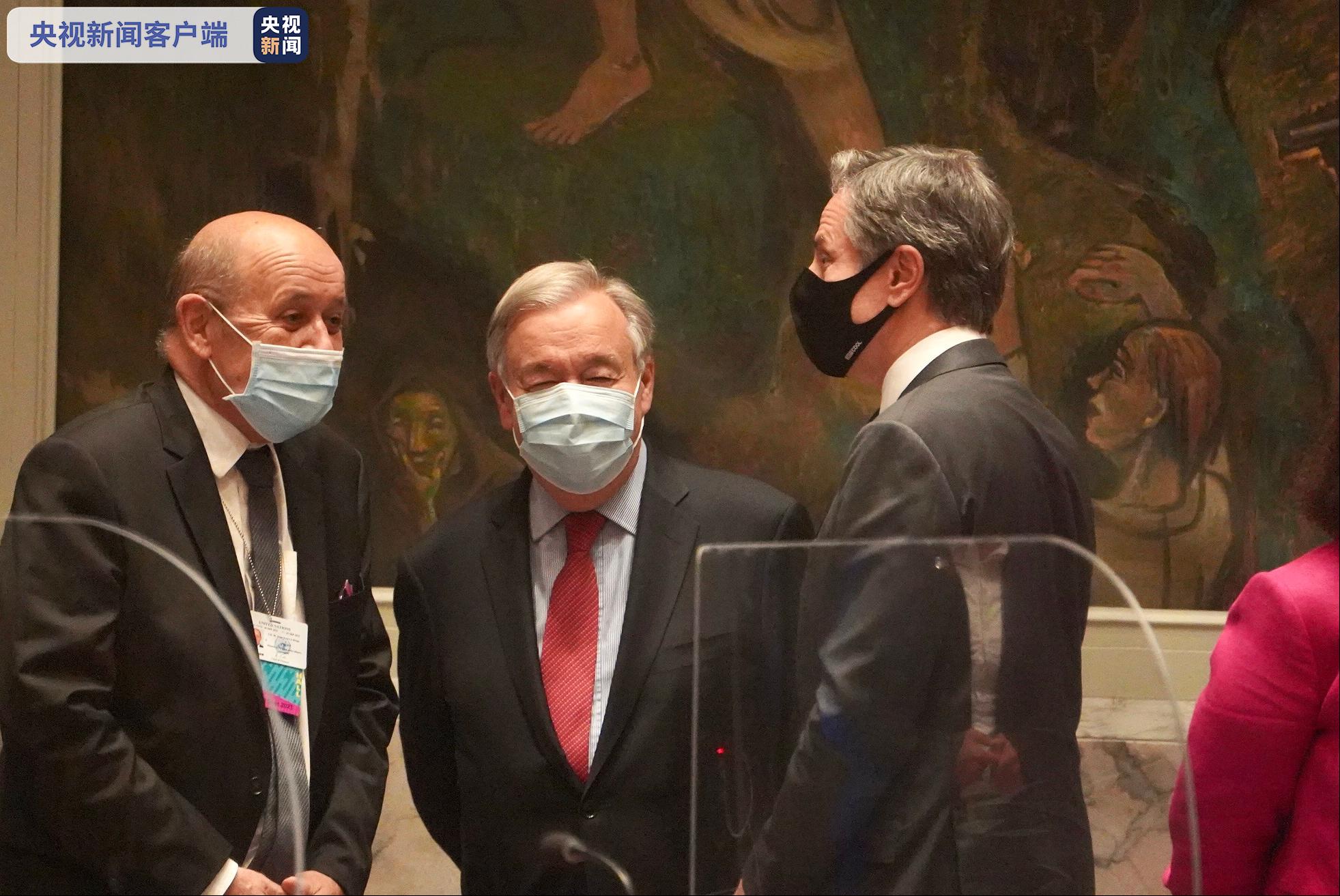 △法国外交部长勒德里昂、美国国务卿布林肯与联合国秘书长古特雷斯会前接触