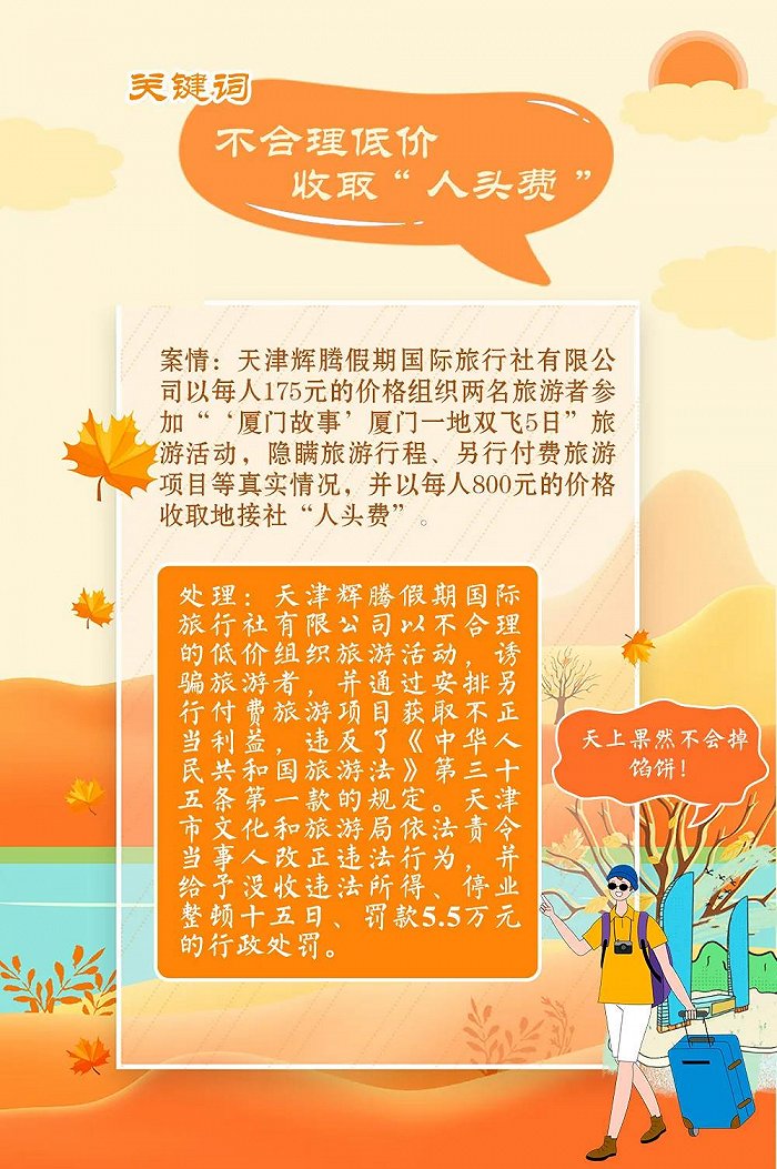 文化和旅游部将整治旅游市场“不合理低价游”列为文化市场综合执法工作重点,在专项整治、假日市场执法、“体检式”暗访评估、网络监测、执法培训等各项执法工作中加强部署,严查“不合理低价游”,持续规范旅游市场经营秩序。文化和旅游部指导各地开展“不合理低价游”整治工作,截至目前,天津、内蒙古、江苏、浙江、福建、江西、山东、河南、广东、广西、四川、贵州、甘肃等13个省(区、市)已依法查办了一批“不合理低价游”案件,对46家旅行社作出没收违法所得、罚款、停业整顿、吊销旅行社业务经营许可证等行政处罚,有力地震慑了旅游市场违法违规经营行为。