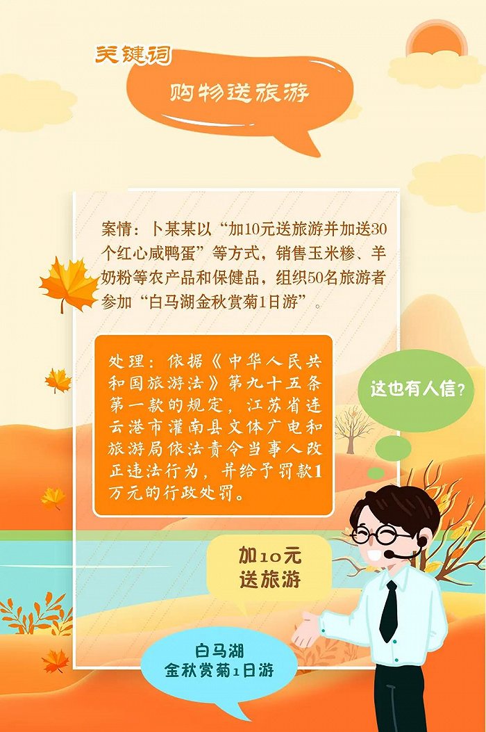 为进一步加强社会监督,规范旅游市场经营秩序,文化和旅游部公布了专项整治行动第四批指导案例,包括以康养活动招徕旅游者、购物送旅游、网络招徕、旅拍、“不合理低价游”的执法案例。国庆节将至,文化和旅游部提示广大旅游者审慎甄别旅游产品,理性选择合法正规的旅游服务,自觉抵制“不合理低价游”,保障自身安全和合法权益。欢迎社会公众通过举报电话12318和举报平台jbts.mct.gov.cn对违法违规旅游市场经营活动进行举报监督。