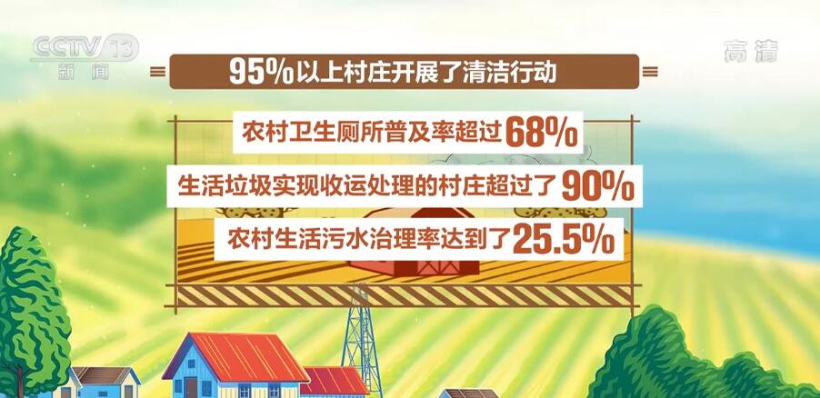 今天的乡村,面貌焕然一新。95%以上村庄开展了清洁行动,农村卫生厕所普及率超过68%,生活垃圾实现收运处理的村庄超过了90%,农村生活污水治理率达到了25.5%。