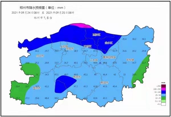 郑州市防汛抗旱指挥部办公室日前发布防汛安全提示:据郑州市气象台预报,24日郑州市有大到暴雨,降水量30—50毫米,局部60—80毫米,最大小时雨强20—30毫米,伴有4级左右东北风,明显降雨时段在24日11时至25日08时。