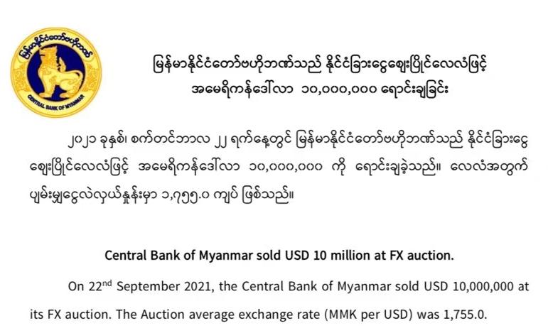 此前缅甸央行在7月共分12次投放了3900万美元,在8月共分7次投放了2800万美元,在5月共分4次投放了2400万美元,4月和6月则都是投放了1200万美元。近日,缅甸央行还表示,目前投放的美元将优先投放到食用油、燃油、医药用品等行业的进口企业。