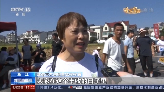 浙江省建德市大同镇黄垅村村民:特别高兴,特别开心,在这个丰收的日子里大家都特别开心,稻子都丰收了,农民们都开心了。