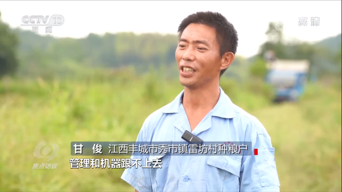 江西省丰城市秀市镇雷坊村种粮户 甘俊:规模太大了,管理和机器都跟不上,尤其是去年7月份连续阴雨天气,没有烘干机器设备,看着抢收回来的粮食发霉,心疼。